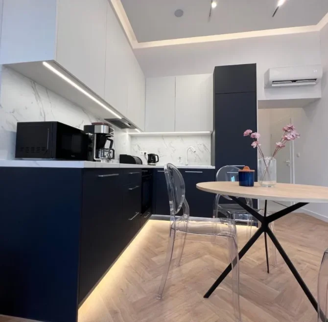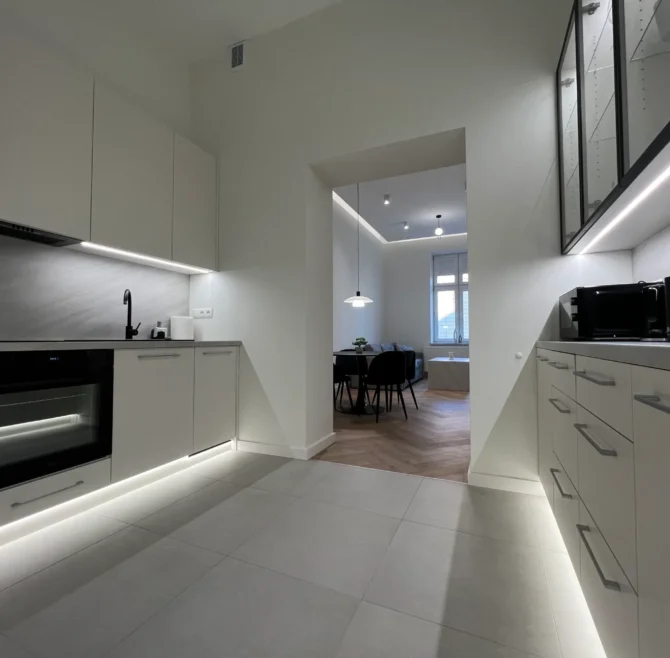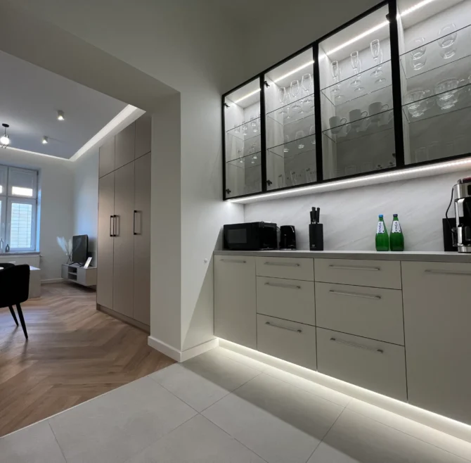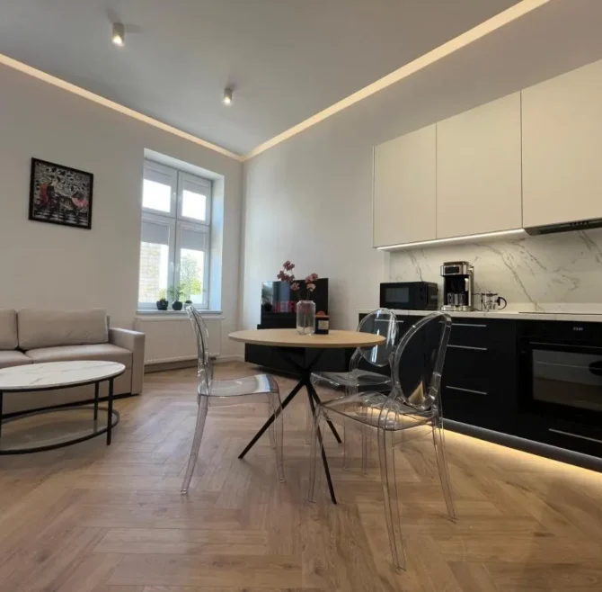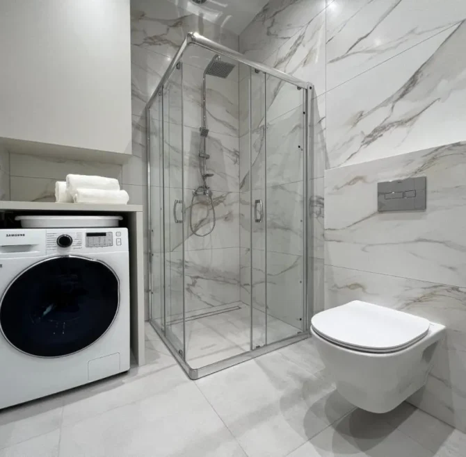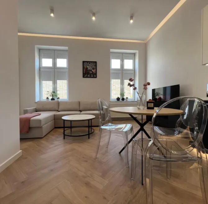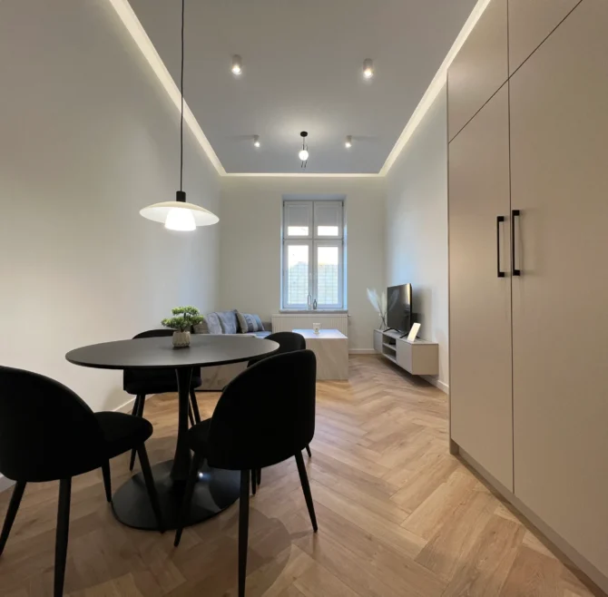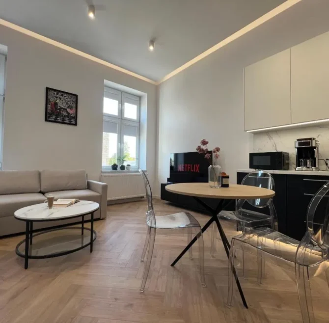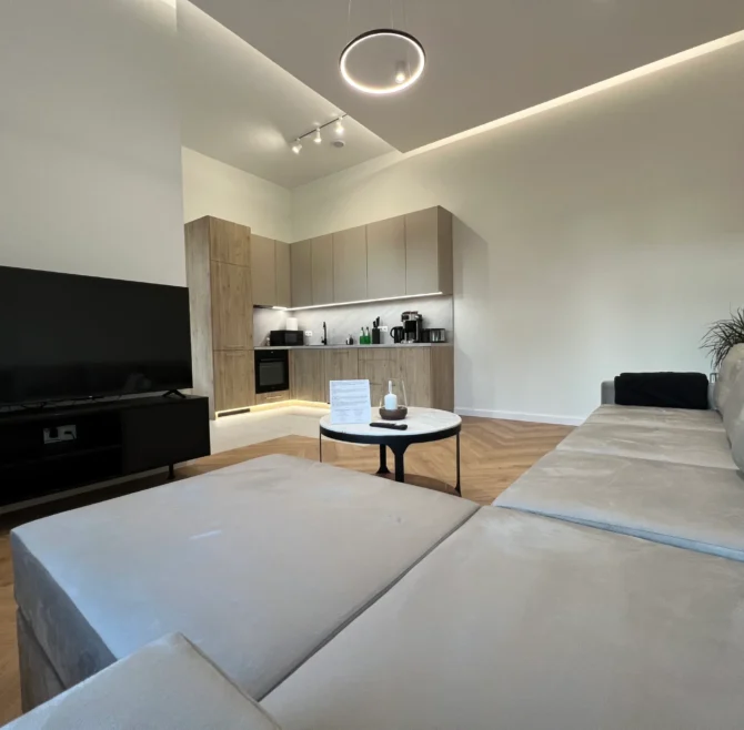 Przestronny apartament 59 m² z nowoczesnymi udogodnieniami i aneksem kuchennym – komfort i prywatność na najwyższym poziomie, jak w domu.